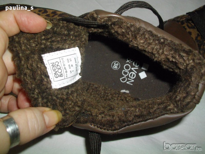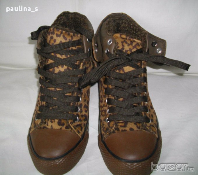 1️⃣. Колаж / Номер 38 / "Even & Odd". Цената е крайна 49,99лв / 25 евро. Актуални дамски кецове. Отвътре са топло подплатени с вата, отвън еко кожа в леопардов принт. Нови (подарък са ми), само съм пробвала, че не са ми удобни, без никакви дефекти или забележки.