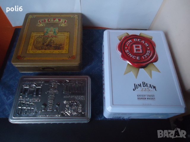 снимка № 3,метална кутия CIGAR размер 23,5/23,2/5,4см цена 2€/метална кутия Jim Beam размер 26,520/9,5см цена4€