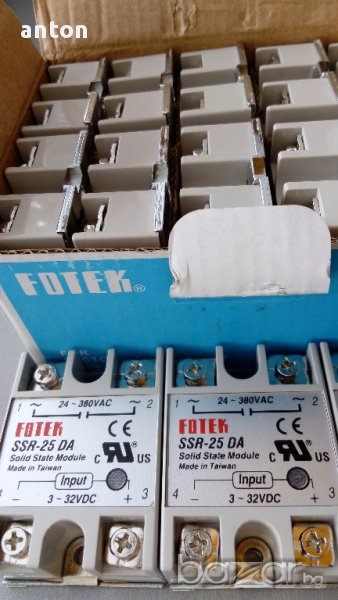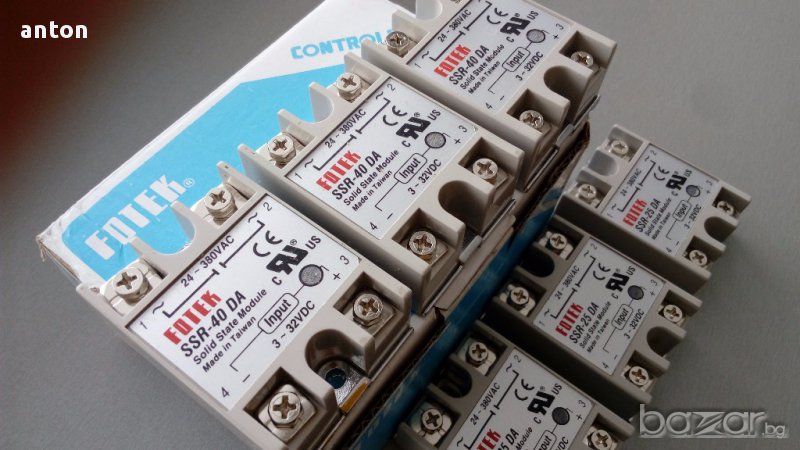 Полупроводникови релета за перални, бойлери , печки и други електроуреди. Заместват по-бавните механични релета. OMRON / FOTEK и др. Има различни модели за постоянен и променлив ток, както и за различни напрежения. Питайте ако не сте сигурни какво ви трябва.