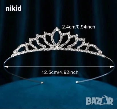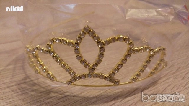 фина сребриста златиста корона диадема с камъчета тиара дамска детска → Обява 17336160