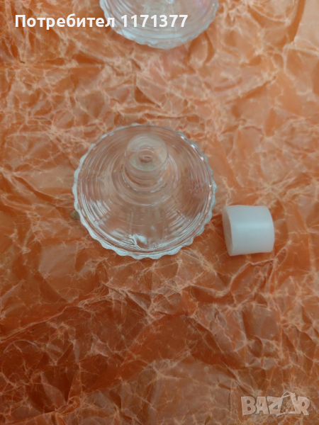 Продавам нови стъклени запушалки/тапи с пластмасов накрайник. Диаметър 18мм. в долната част и 20мм. в горната. Пластмасата може да се демонтира. Цена:1.50 EUR./бр.