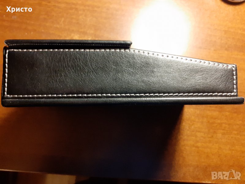Продавам поставка за бюро за листчета Пиер Карден Париж Pierre Cardin Paris, черна висококачествена естествена кожа. В черна подаръчна кутия и сертификат. Производство Италия. Размер 18х14х4,5 см. Антикварна рядкост. Прекрасен подарък.