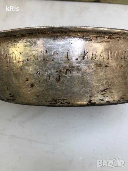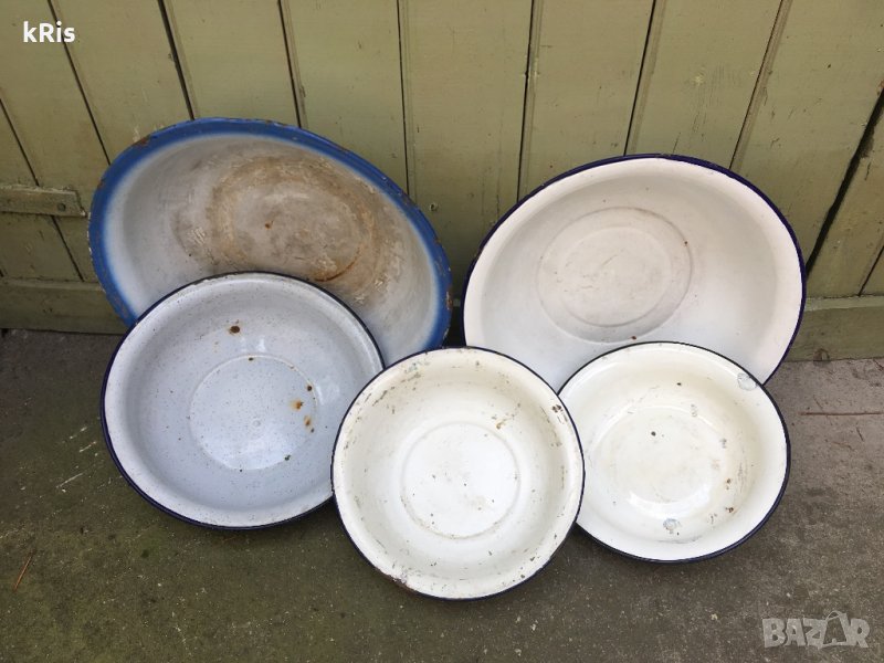 предлагам: медна тава с дръжки от край до край 32см дuлбока 11см=99лв, меден тиган от край до край 23см дълбок 5см с надпис: от С.Ивановь 1938г =99лв, стар меден съд за пуканки=60лв, старо менче 1931г с надпис 'ь',вис.16см,от край до край 22см=111лв, няколко емайлирани легена от край до край 30 и 50смв, чаша с капак вис17см от край до край 13см=66лв, няколко медни тенджери 24 и 26см от край до край, медни подноси 22 и 30см от край до край, две стари ПерСийски Лампи, много стар полилей-абажур към който има и два стенни аплика=по договаряне