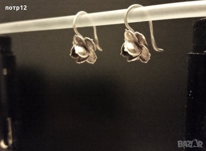 Сребърни обеци /обици/ във формата на цвете, роза → Обява 17345425
