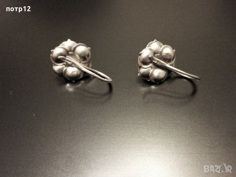 Обеци цвете, във формата на роза. Частично оксидирано сребро. Имат печат. Използвани са но са в много добро, запазено състоние.