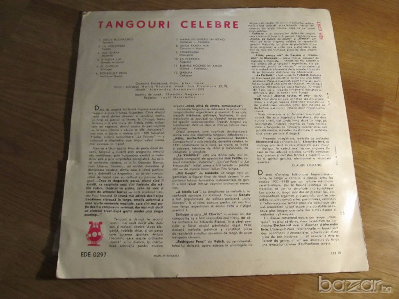 Грамофонна плоча - tangouri celebre - музика танго - изд. 60те години !