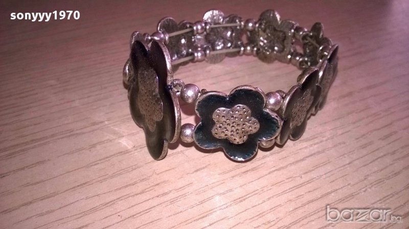 Ретро колекиция масивна гривна-внос швеицария...за колекция или ползване...красива и стилна...нов внос...с ластик е и става за всяка ръка-с цветя по 3.5см и 2см-пращаме със спиди или еконт с преглед и тест след превод на капаро за куриерската услуга поради зачестили некоректни потребители-поръчки само тук в саита! по телефона и със смс не! краини цени! бартери не правиме! ПАРИ НЕ ВРЪЩАМЕ! всеки ден нови неща-още 2-3 наши обяви тук
