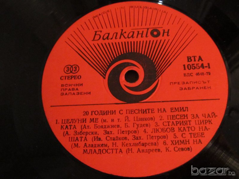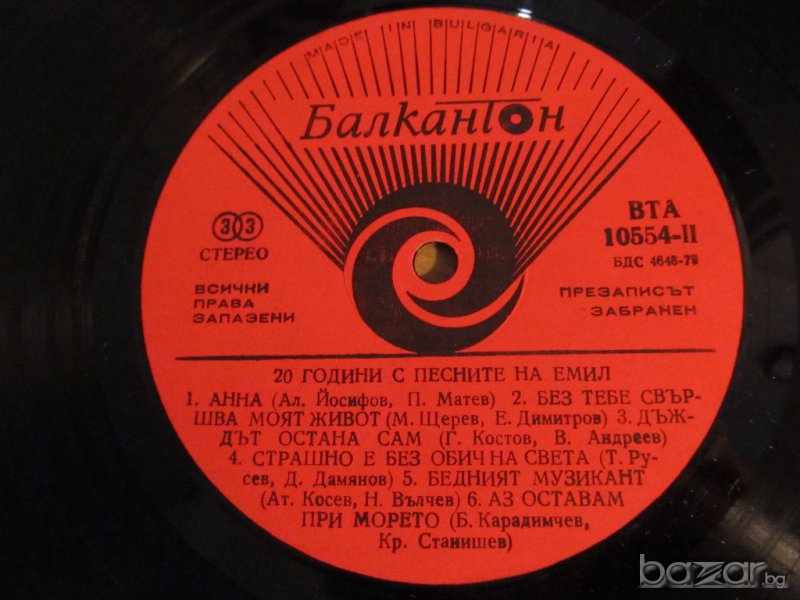 Грамофонна плоча 20 години с песните на Емил - изд. 78 година !
