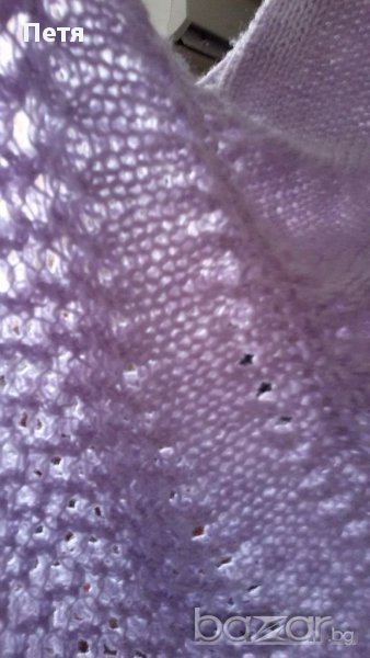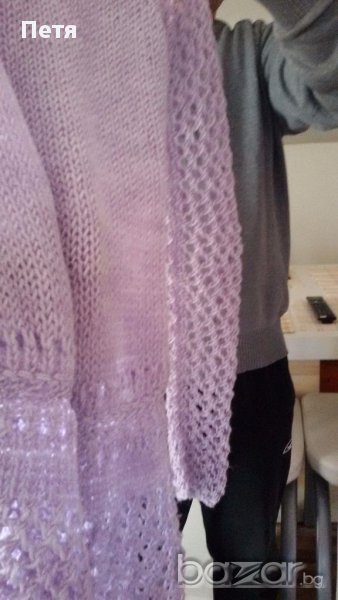 Плетена по поръчка, но се оказа малка, интересни бие и ръкави, нежен люляков цвят, става за м и с размер