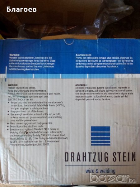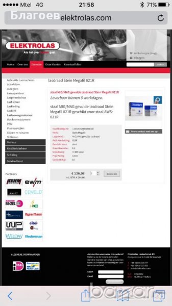 Продавам оригинална тел за заваряване Stein - Megafil 821 R; 1,2 mm; k300; 16 kg; работеща в защитна газова среда от CO², Ar+CO², Ar+O², Ar. Намира приложение за заваряване на нелегирани, ниско легирани и легирани стомани. Употребява се в хранително вкусовата и химическата промишленост, корабостроене, автомобилостроене, мостове, метални конструкции, съдове под налягане и др. Произведена в Германия. Имам количество. Посочената цена е за кг.!