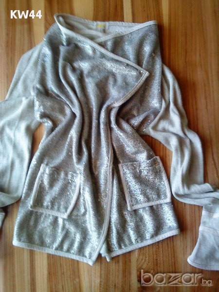Страхотна бежова жилетка, пайетите са само отпред. Размер С/М.