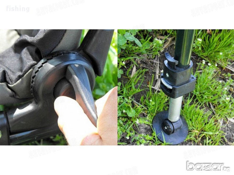 Столът е с алуминиева конструкция, издържаща до 150кг тежест, регулируема облегалка и пети за удобно позициониране спрямо предпочитанията на риболовеца.
