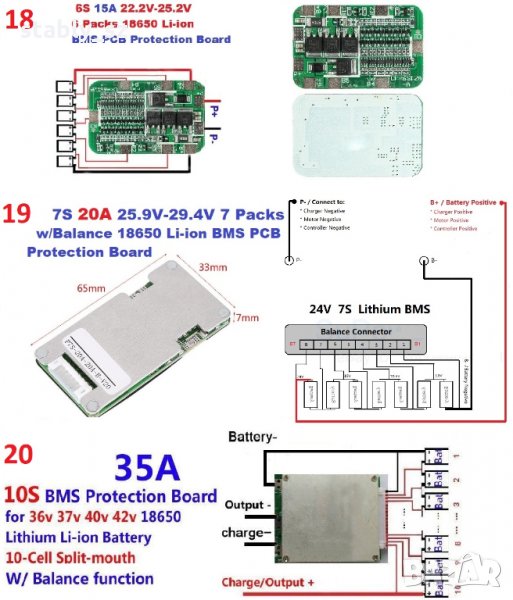 (20) 10S 35A 37V-42V 10 Packs 18650 Li-ion BMS PCB Protection Board W/ Balance- 32,00лв