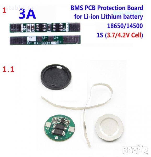 (1.1) 1S 4A 3.7V-4.2V 18650 Li-ion BMS* PCB Protection Board- 3,00лв.