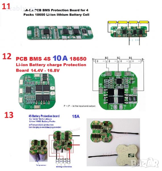 (11) 4S 4A-5A 14.8V-16.8V 4 Packs 18650 Li-ion BMS PCB- 6,00лв.
