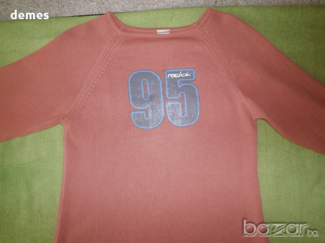 Много красива спортно-елегантна блуза Rеевок. Цветът е прекрасен-корал. 7/8 ръкав с маншет. По врата. На гърдите с щампа 95 и деликатна емблема Rеевок на гърба. 100% памук. Може да се носи и върху блуза. Много запазена, малко носена. Оригинална е. Размер М.