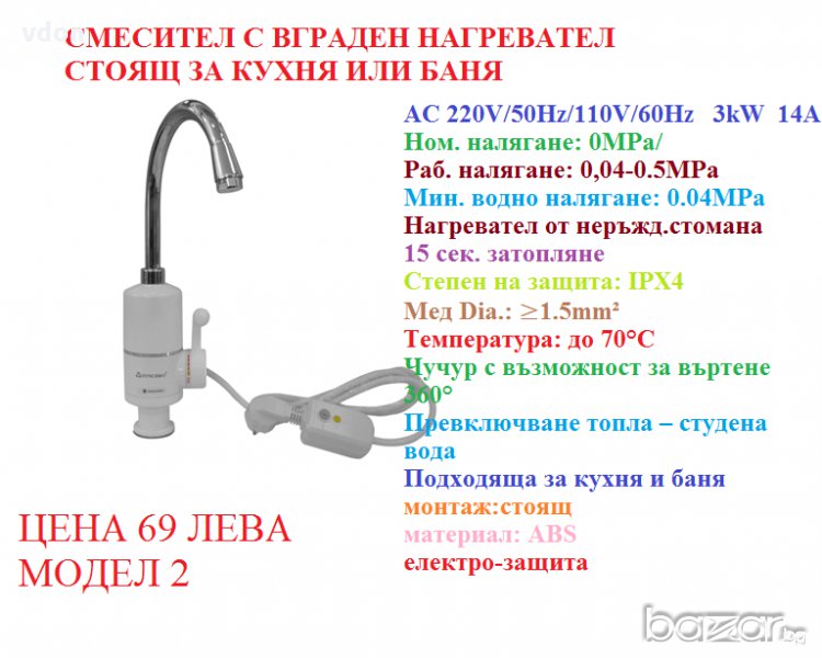 Смесител с вграден нагревател - смесител с бойлер - 24МЕС. ГАРАНЦИЯ