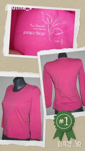1️⃣. L / 3XL - "Paprika". Цената е крайна 9,99лв / 5 евро. Маркова еластична блуза, унисайз. Цвят Циклама, трико-памук и ликра доста еластична, хипоалергична. Има леки пропускания на бодове в доните подгъващи тегели при пробване от едри дами, съобразена цена, не е носена.