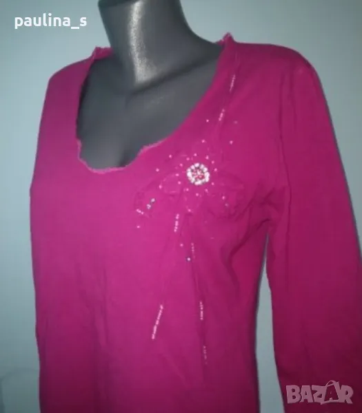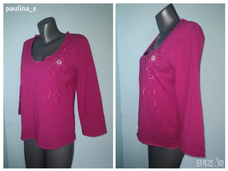 3️⃣. Колаж / XL / 3XL - Тъмно розова памучна блуза с перлени декорации. Цената е крайна 14,99лв / 7,5 евро. Еластична памучна блуза с дълъг ръкав с декорации, в разкошен тъмно цикламен цвят. Материята е памук и ликра и покрива няколко размера, посочени са. Ръкавите са без подгъви с дължина 7/8.