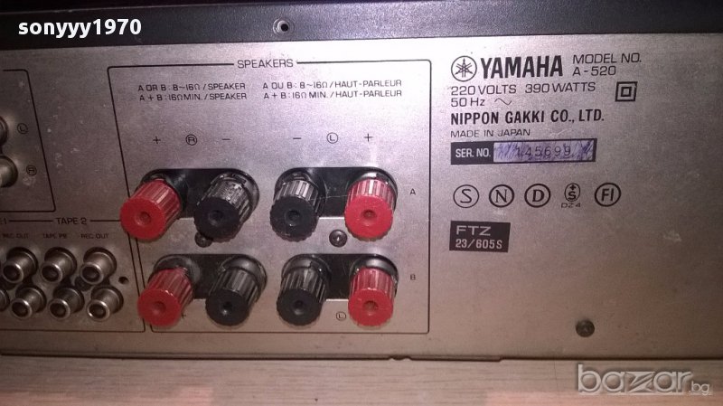 yamaha a-520 stereo amplifier-390w-внос швеицария...японска машина за колекция или ползване...усилвател с изходи за 4 колони...работи идеално-пращаме със спиди или еконт с преглед и тест след превод на капаро за куриерската услуга поради зачестили некоректни потребители-поръчки само тук в саита! по телефона и със смс не! краини цени! бартери не правиме! ПАРИ НЕ ВРЪЩАМЕ! всеки ден нови неща-още 2-3 наши обяви тук