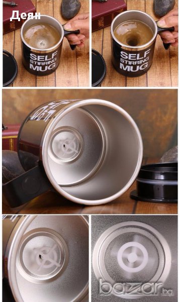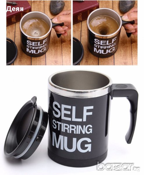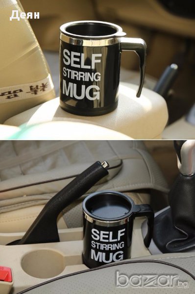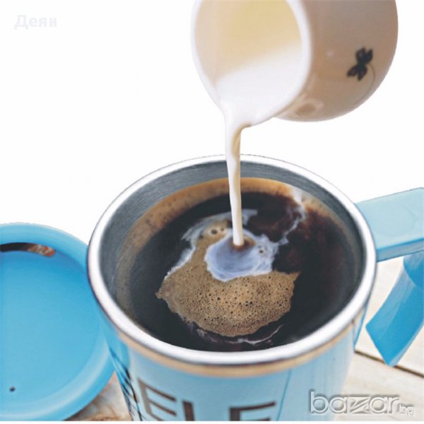 Страхотна идея за подарък за мъж или жена - саморазбъркваща чаша за кафе, чай, капучино и каквото още пожелаете. Удобна и много лесна за употреба, тази термочаша има вместимост 350 мл. и работи с 2 батерии ААА (които за Ваше улеснение сме включили в комплекта). Кажете край на досадното бъркане с лъжичка, само с натискането на един бутон и напитката, която е в чашата започва да се разбърква сама! Чашата е лесна и за измиване, като не бива да я миете в съдомиялна, за да не се повреди механизма в нея. Изработена е от пластмаса и алуминий. Не използвайте в микровълнова фурна!