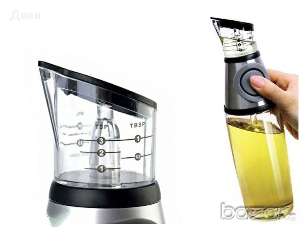 Край на прекомерната консумация на мазнина!С този специален уред вече ще можете да използвате винаги с точност желаното количество олио или оцет при приготвянето на салата или каквото и да е ястие.Просто натиснете бутона, за да изпомпите и измерите необходимото количество мазнина.Удобен аксесоар за всяка кухня и чудесен подарък за всеки дом!Вместимост: 500 ml.Размери: 80 х 80 х 285 mm.Това е иновативно решение за хора на диета и за тези, които биха искали да се хранят здравословно.