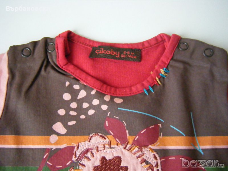 Красива бебешка блузка с апликация и бродерия на фирма Cikoby .Състав-100% памук.Размери-6-9месеца.