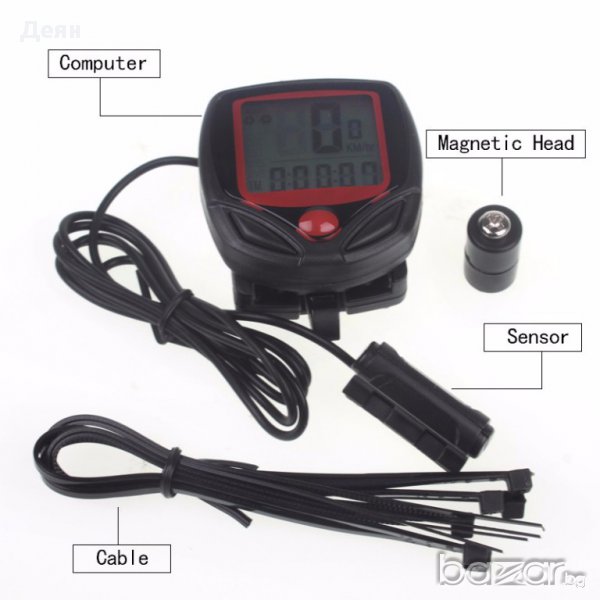 Часовник - 12/24 формат на часовника 6. AVS - средна скорост 7. MXS - максимална скорост 8. DST - изминато разстояние 9. Възможност за ръчен стоп/старт 10. Избор на режим на изписване – Км/ч, М/ч 11. ODO – Одометър 12. Общо изминато разстояние 13. Възможност за „замразяване” на дисплея на определена позиция 14. Възможност за автоматично циклично показване на различни параметри 15. Настройка на последните стойности на километража Монтажа е изключително лесен и отнема около 10 мин. Уреда е влагоустойчив, което Ви позволява да тренирате при всякакви условия.