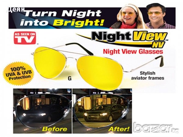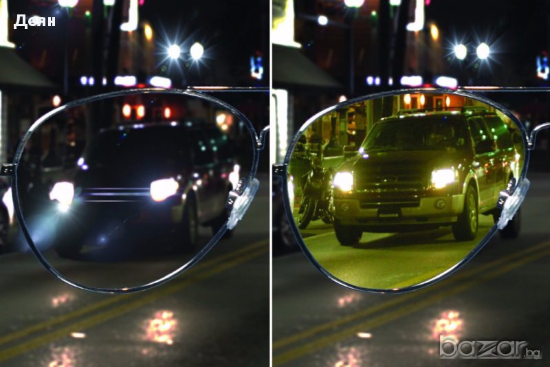 Очила за мъгла и нощно шофиране:Тези очила са изключително подходящи при лоши атмосферни условия и здрач.Подобряват видимостта при мъгла. допринасят за по-отчетливо разпознаванена обектите, намаляват заслепяването от насрещно движещите се автомобили.Тези очила наистина "работят":Принципът на действие се основава на физични закони свързани с дифракцията на светлината. Подбраният жълт цвят се оказва подходящият филтър при заслепяване, като същевременно подобрява видимостта при здрач, мъгла и прах. Това е така защото жълтият цвят пропуска избирателно светлината с по-голяма дължина на вълната (която успява да "заобиколи" миниатюрните частици мъгла и прах по пътя си) и подтиска дразнещия за окото син спектър от фаровете на насрещно движещите се автомобили, или отразен в мъглата от собствените ни фарове. За експеримент погледнете предмет със син цвят на дневна светлина. Ще видите как синьото "изчезва".Формата, (класически бъбрек) рамките и размерите на очилата осигуравят максимален ъгъл на видимост.