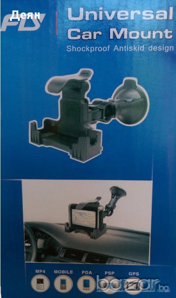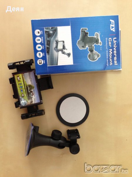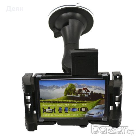 Универсална стойка за таблети и навигация за колаТова е стойка за таблети и навигация, която е предназначена за автомобил. Тя е универсална – съвместима е със всякакви модели телефони, GPS навигации, MP4 плеъри, PSP и др. Тази стойка е с твърдо рамо с възможност за регулиране на ъгъла на 360 градуса. Също така може да се регулира и височината, широчината и дебелината на държача. Стойката се прикрепя с вакуум за стъклото или с държач за отворите на парното на автомобила. Регулирането на широчината на държача е от 10 до 17 см.; на височината е от 8.3 до 10.3 см. и на дебелината е от 3 до 4.5 см. Височината на рамото е 16 см.Комплектът съдържа: 1бр. държач, 1бр. рамо с вакуум и 1бр. държач за отворите на парното