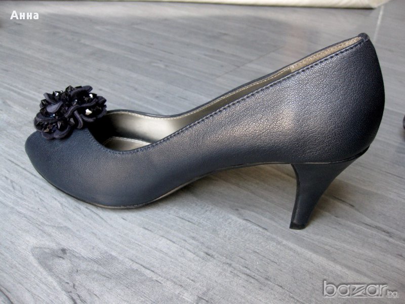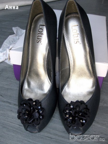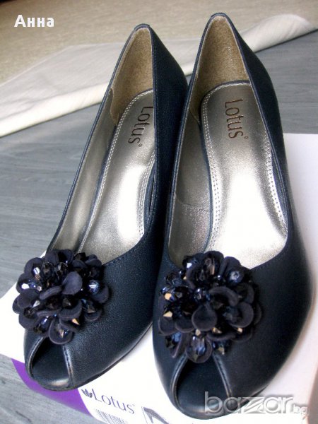 Продавам нови супер елегантни обувки на английската фирма LOTUS. Това е актуален и много стилен модел, с красива декорация отпред на деколтето. Обувките са подходящи за всякакъв повод и облекло. Обувките са номер 39 / 6 UK/;с дължина на стелката 25,1 см.;лицева част и стелка - естествена кожа ;тъмно син цвят ;височина на тока 7,5 см.;Стелката е омекотена допълнително, което прави обувките удобни и приятни за носене. Купувала съм ги от английски сайт, но са големи за мен. Пробвани са за около час.В този сайт може да ги разгледате по-подробно http://www.houseoffraser.co.uk/Lotus+Lotus+chantille+formal+shoes/182645421,default,pd.html