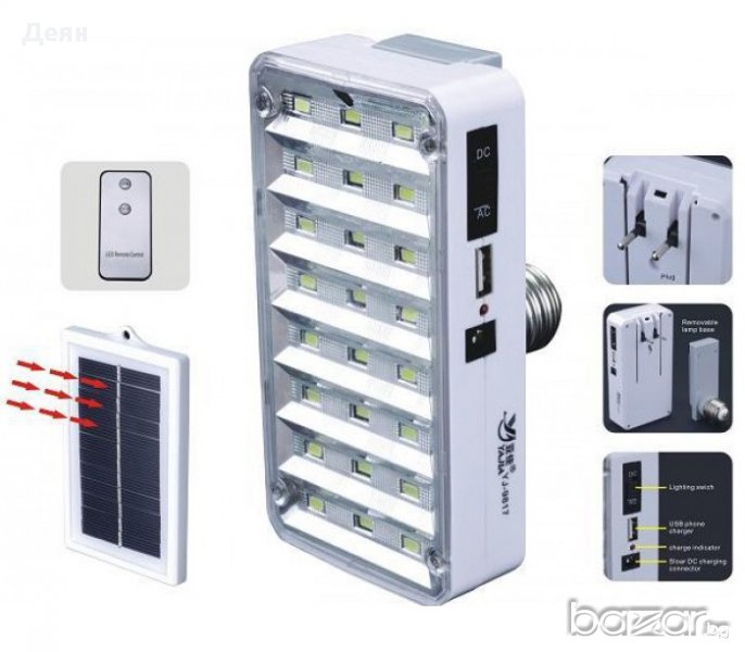 Мобилно осветление – соларна лед лампа, която се зарежда от слънцето, или от мрежата. С вграден акумулатор, удобна както за домашни условия, така и за къмпинг, риболов и др.