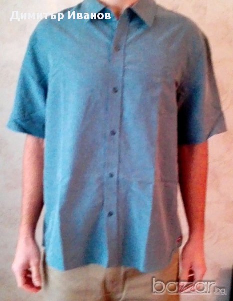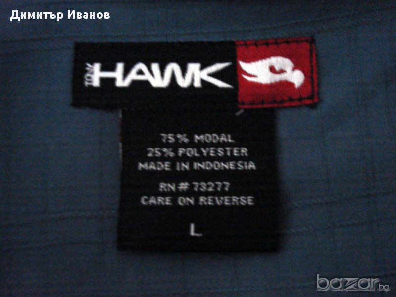 Продавам риза с къс ръкав Hawk, размер L. Материята е 75% Modal, 25% полиестер, мека, близка до коприна.