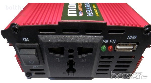 Висококачествен инвертор марка CEJ 12V-220V, 500W - за коли, камиони и автобуси, преобразува напрежението от акумулатора в 220 V.Без адаптери, преходници и скъпи зарядни за запалки. Вече може да зареждате, Вашия телефон, таблет, лаптоп, телевизор, аудио и видео, вентилатор и друга техника.Захранване с кабел и щипки директно от акумулатора заради по-голямата мощност.Уреда има температурна защита, мощен вентилатор който го охлажда и в най-горещите дни.Наличие на звукова сигнализация при прекалено ниско или високо входно напрежение.Предпазител отвън на уреда, за моментална смяна при нужда Изходи:- Европейски контакт - 220V- USB порт - 5VТехнически характеристики:1.Изходно напрежение - 220V2.Честота 50+/-2 Hz3.Форма на вълната - модифицирана синусоида4.Изведен отвън предпазител 40А
