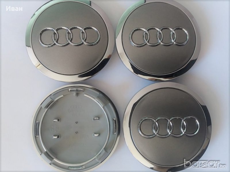 Капачки за джанти Ауди с Външен диаметър 60, 68, 69 мм, цвят сив и черен. Капачки за вентили 4 бр. за 4,09 /8 лв.