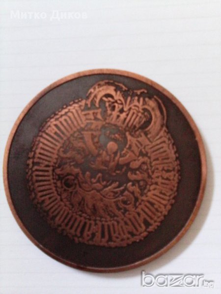 Плакетата е стара руска медна или месингова чéрвеникав оттенък-има надпис от едната страна на правописа е много особен и не мога да разбера какво пише-а от другата страна има изглед от руски град вероятно Москва или Ленинград-диаметър 8см-изпращам по еконт с отстъпка