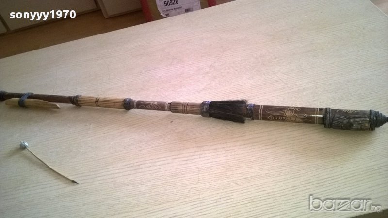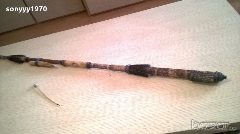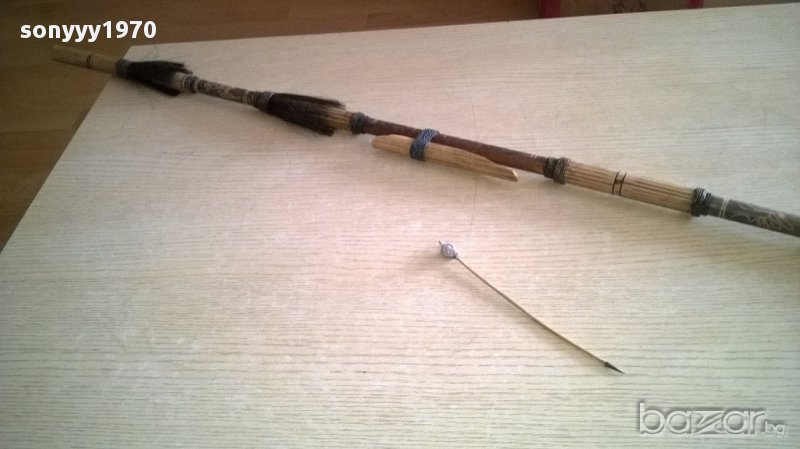 Древно африканско оръжие с стрела-бамбук-резба-внос швеицария...дълго 125см-има стрела с метален връх-за колекция...декорация или ползване...разглобява се на части...красиво и стилно-поръчки само тук в саита! от днес 28.02.22г пращаме със спиди или еконт с преглед и тест след превод на капаро за куриерската услуга поради зачестили некоректни потребители-поръчки само в тук в саита! по телефона и със смс не! краини цени! бартери не правиме! всеки ден нови неща-още над 18000 обяви тук