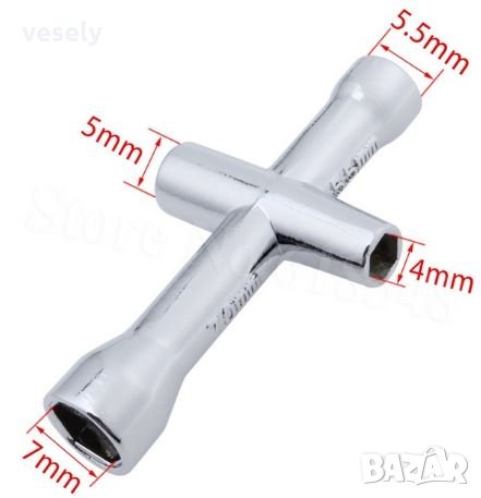 Миниатюрно кръстато ключе 4 в 1 с глухи HEX (4 мм, 5 мм, 5.5 мм, 7 мм). Материал aluminium alloy.