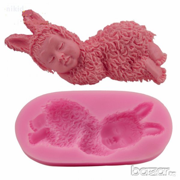 бебе заек с козинка силиконов молд калъп форма шоколад декорация торта глина сапун → Обява 17505603
