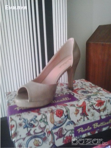 Продавам нови елегантни дамски обувки.Марка "Паоло Ботичели",Обувани са само 1 път.Номер 37.Цвят-бежов,От еко кожа , с отворени пръсти и отделна пета от вътрешната страна на обувките,с комплект резервни капачета.