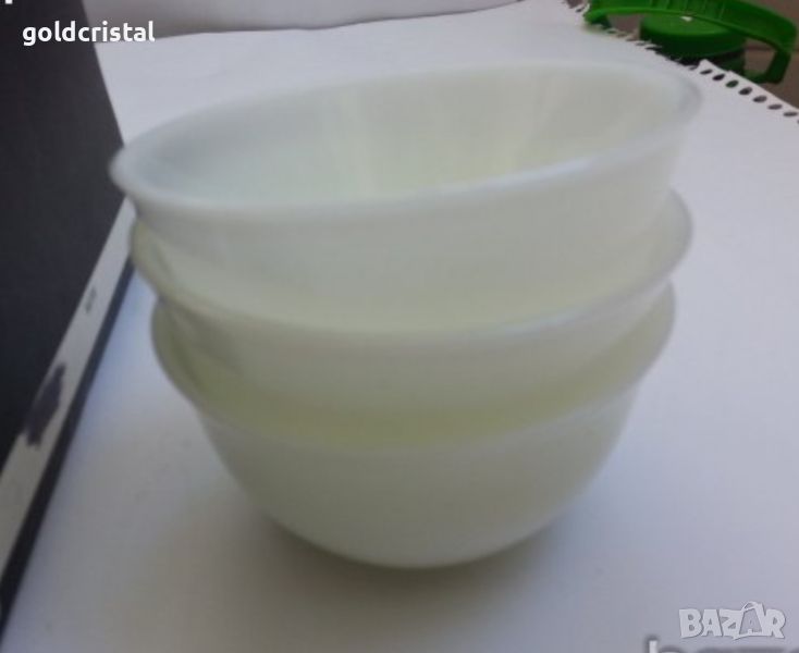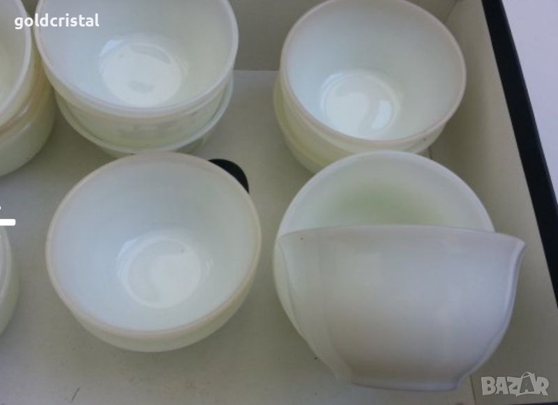 Ретро купички чашки филджани от български аркопал опал опалин закалено млечно стъкло термо стъкло 6бр-25лв подходящи за ядки сладолед крем карамел кексчета мъфини и др огнеупорни млечно закалено стъкло сервиз комплект сет лот ретро арт декор винтидж колекция стари антикварни предмети обзавеждане за дома и семейството