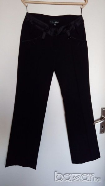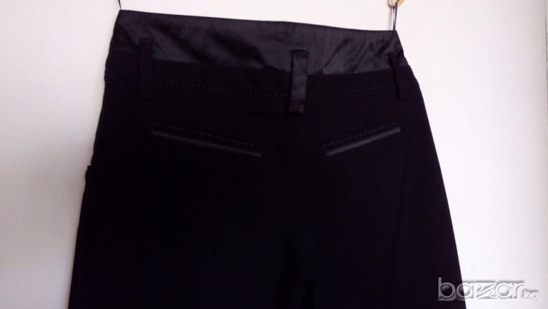 Черен Официален панталон с ръб отпред на марката Юнона,отзад е със страхотна имитация на джобчета,материята е тежка,изпечена,носен е веднъж, никакви забелвжки,размер S,купен е 79лв