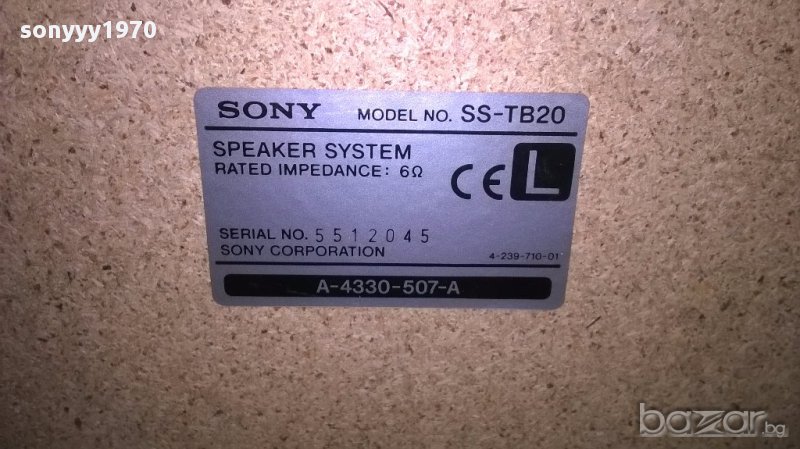 Sony ss-tb20/6ohms/sony corp.29х22х21см-2бр-внос швеицария...2 броя тонкоони сони с кабели и решетки...внесени вчера от швеицария и като нови....свирят превъзходно и са без ремонти...оригинално всичко-от днес 28.02.22г пращаме със спиди или еконт с преглед и тест след превод на капаро за куриерската услуга поради зачестили некоректни потребители-поръчки само тук в саита! по телефона и със смс не! краини цени! бартери не правиме! всеки ден нови неща-още 2-3 наши обяви тук