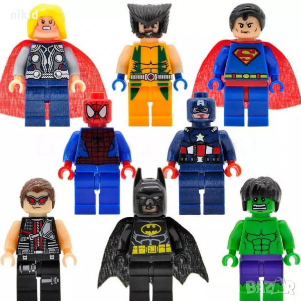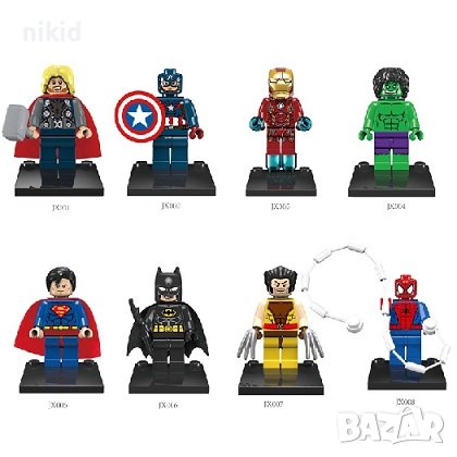 8 фигурки за Лего конструктор герои Marvel Марвел Отмъстителите Батман Супермен СпайдърМен → Обява 17552855