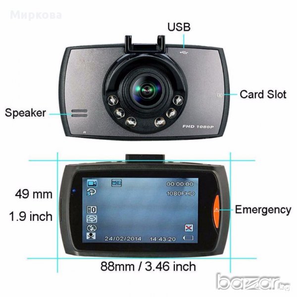 • Поддържа автоматично стартиране когато колата се запали• Батерията има дълъг живот на записване