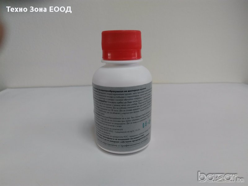 Забележка: Ръждопреобазувателя не е лак. Ако попадне върху лакирани повърхности, веднага да се отмие с вода. Да не се използва при пряка слънчева светлина, върху нагорещени над +40С повърхности и при опасност от замръзване. Да се пази от замръзване. След употреба,четките/валячето могат да се почистят с вода.