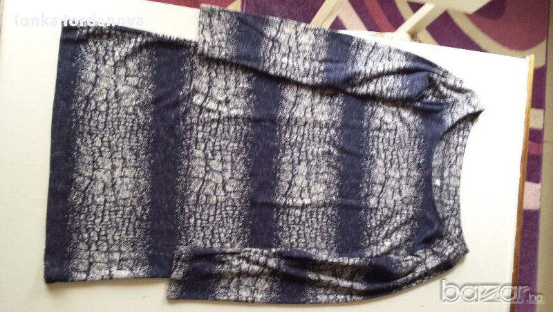 Рокля тъмно синьо и сиво.Много мека и финна материя,която следва извивките на тялото, еластична и мека. Красива и удобна, не се мачка.