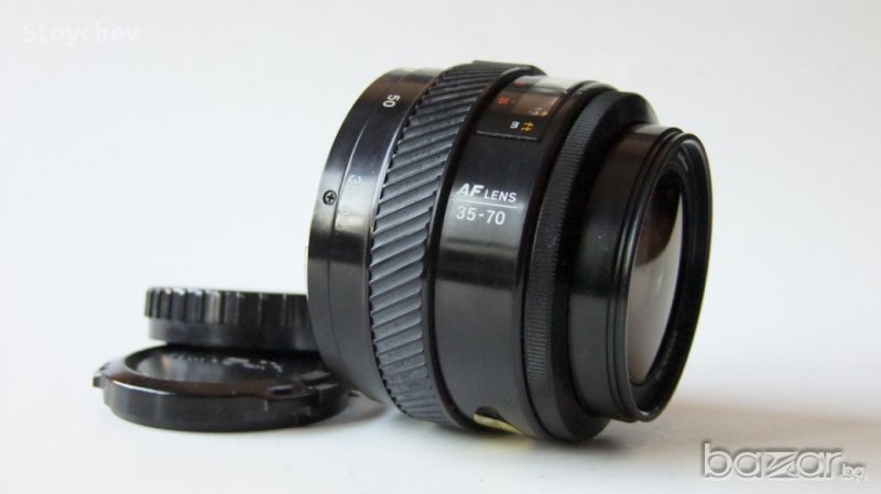 Minolta AF Zoom 35-70mm 1:4. Sony a-байонет. Много добро състояние на обектива. Запазен корпус, оптика без забележки, функционираща механика в автофокусен режим. Резба за филтър 49мм. Две оригинални капачки. 80 лева.