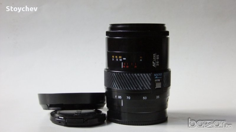 Minolta AF Zoom 28-85mm 1:3.5-4.5. Sony A-байонет. Много добро състояние на обектива. Корпус като нов, оптика без забележки, работеща механика в автофокусен режим с дигитално тяло Sony. Резба за филтър 55мм. Две оригинални капачки, оригинален сенник. 120 лева.