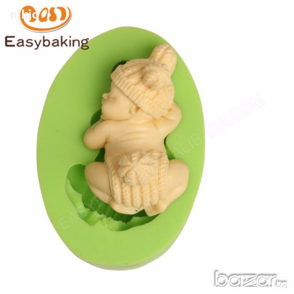 3D бебе с плетени заешки уши ушички шапчица и гащички опашле силиконов молд фондан гипс свещ торта → Обява 17604625